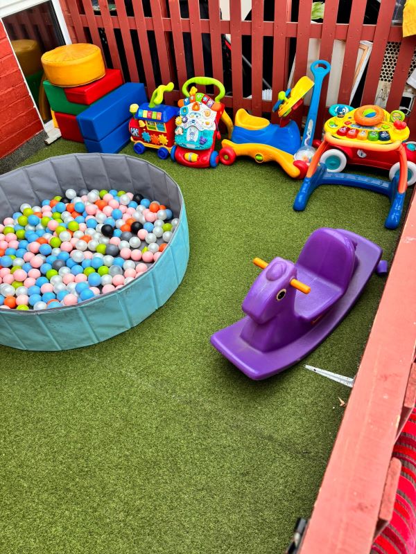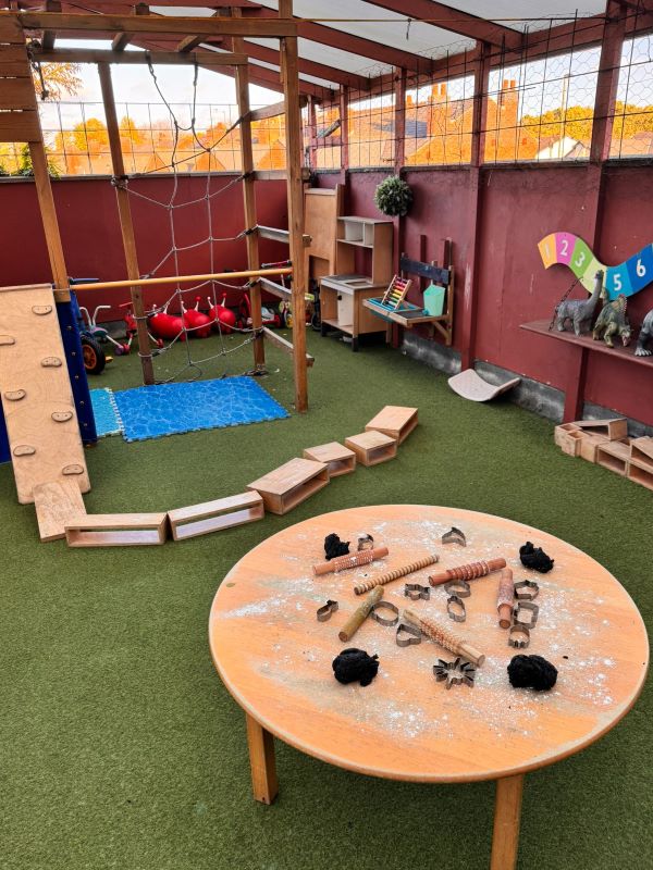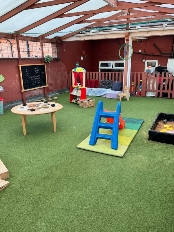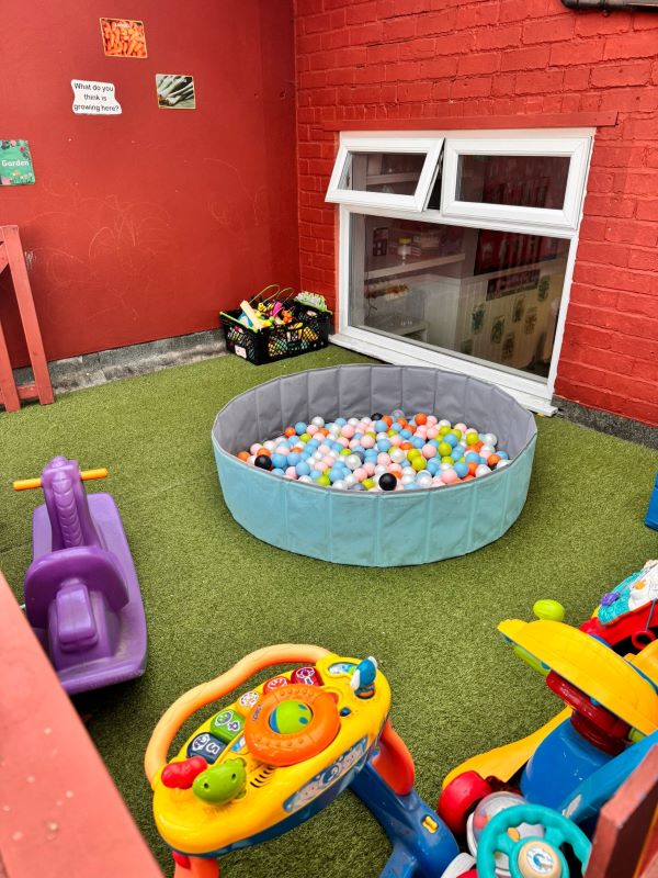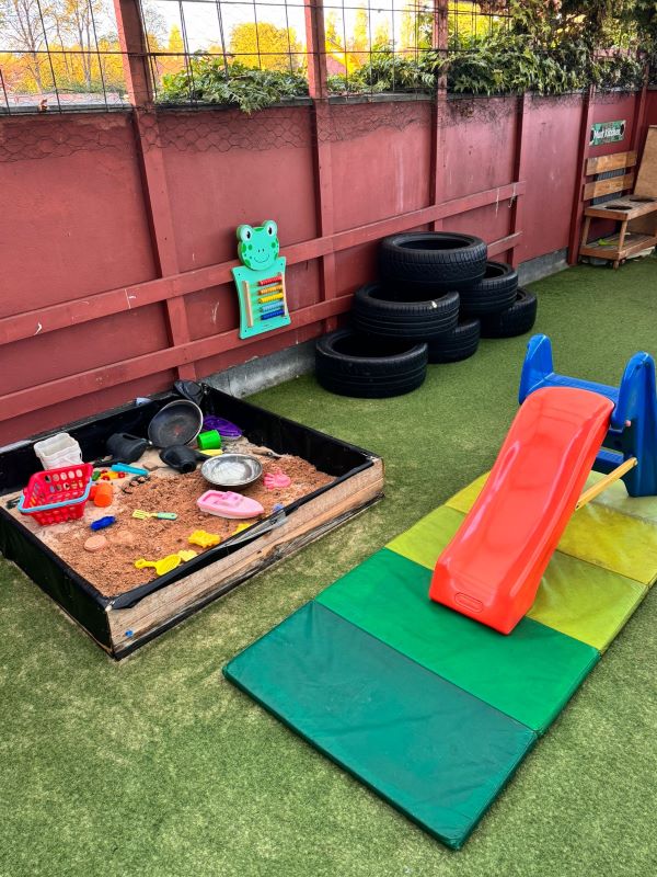 Children of all ages have access to a large sand pit which encourages little ones to experience the textures and sensory elements that this valuable resource provides.